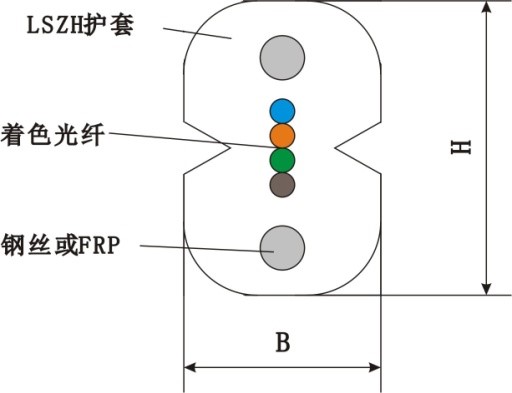 GJXH金属加强构件、低烟无卤阻燃聚烯烃护套、蝶形引入光缆