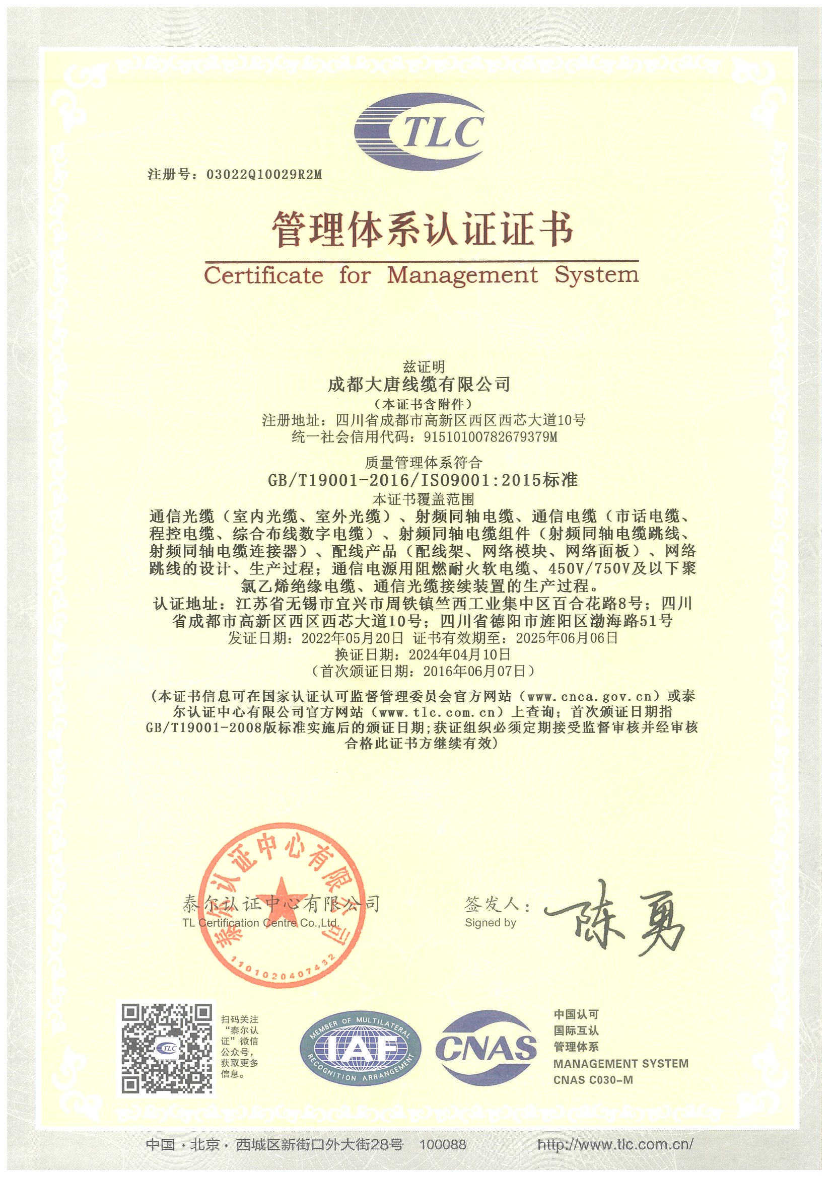 酷游-KU游平台登录 是通信线缆企业中少有的同时具有光缆产品和电缆产品设计开发和生产能力的企业,公司的“大唐电信”品牌数字通信电缆产品综合布线十大品牌,在西南地区市场占有率达到60%以上。馈线同轴电缆、数字通信电缆、光缆,多年来也一直是中国铁塔、中国移动、中国联通、中国电信的集采中标供应商。